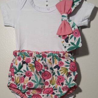 Kit Verão 3 Pçs Laço Rosa 9 A 12 Meses