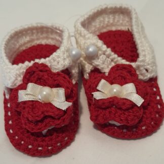 Sandalia Croche Vermelho E Branco