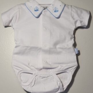 Body Branco Barco Azul Bebê Mc Rn